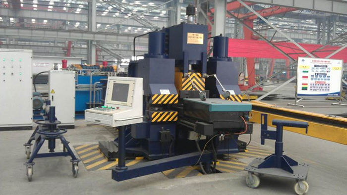 該設(shè)備是國際上最新機型,是船廠進行肋骨加工的智能化設(shè)備。主要用于船體肋骨不同線型冷加工彎制,可加工球扁鋼、角鋼、T型材。通過對型材進行自動三維彎曲,可獲得平整的內(nèi)彎、外彎、S彎形狀的工件,也可進行型材的校直和校平。工作過程是在全自動狀態(tài)下進行,并具備半自動和手動狀態(tài)下完成工作。